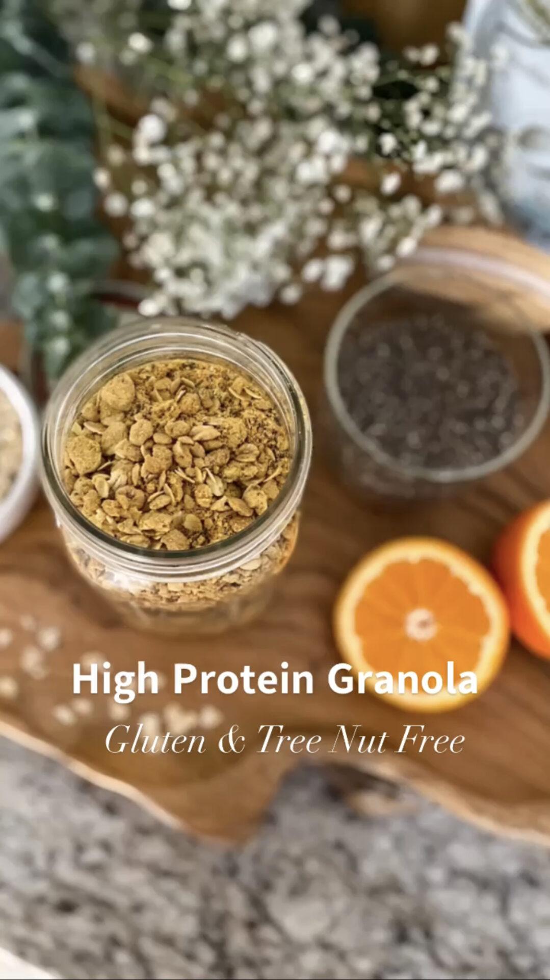 You’re going to love this High Protein Gluten Free Granola! Fiber & protein are hunger crushing nutrients that I recommend my clients have at breakfast to help regulate blood sugar levels and ward off excessive hunger throughout the day.